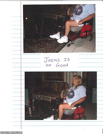 Ruby Hood struggled for over 2 years from severe pain in the joints and muscles of her legs. She suffered with foot drop – one of her legs was shorter than the other. She could not walk without assistance. She used a walker, wore a knee brace and shoe lift. While watching the Great Awakening one night, she decided to call the prayer line. The prayer operator spoke the Word of God over her and prayed for healing in her body. Ruby is now completely healed by the power of God! She went back to her doctors without pain, her walker, brace or shoe lift! The Lord has completely restored her! Click here to view her doctor's reports.